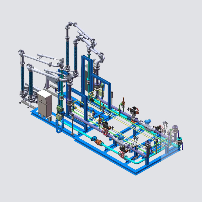 产品描述: 装卸车橇系统是由控制仪、流量计、阀门(气动两段阀、电动阀、电液阀、气动 V 型调节阀等)、管道、附属设备、 鹤管、中间连接件及电缆、防爆套件、装卸车管理计算机、系统通讯和软件等组成。适用介质:苯类(甲苯、二甲苯、苯等)、液氨、液态烃(液化石油气、丙烯、丙烷等)、化工品(甲醇、MTBE 等)、液化天然气、成品油(柴油、汽油、石脑油等)、二氧化碳等石油化工制品。